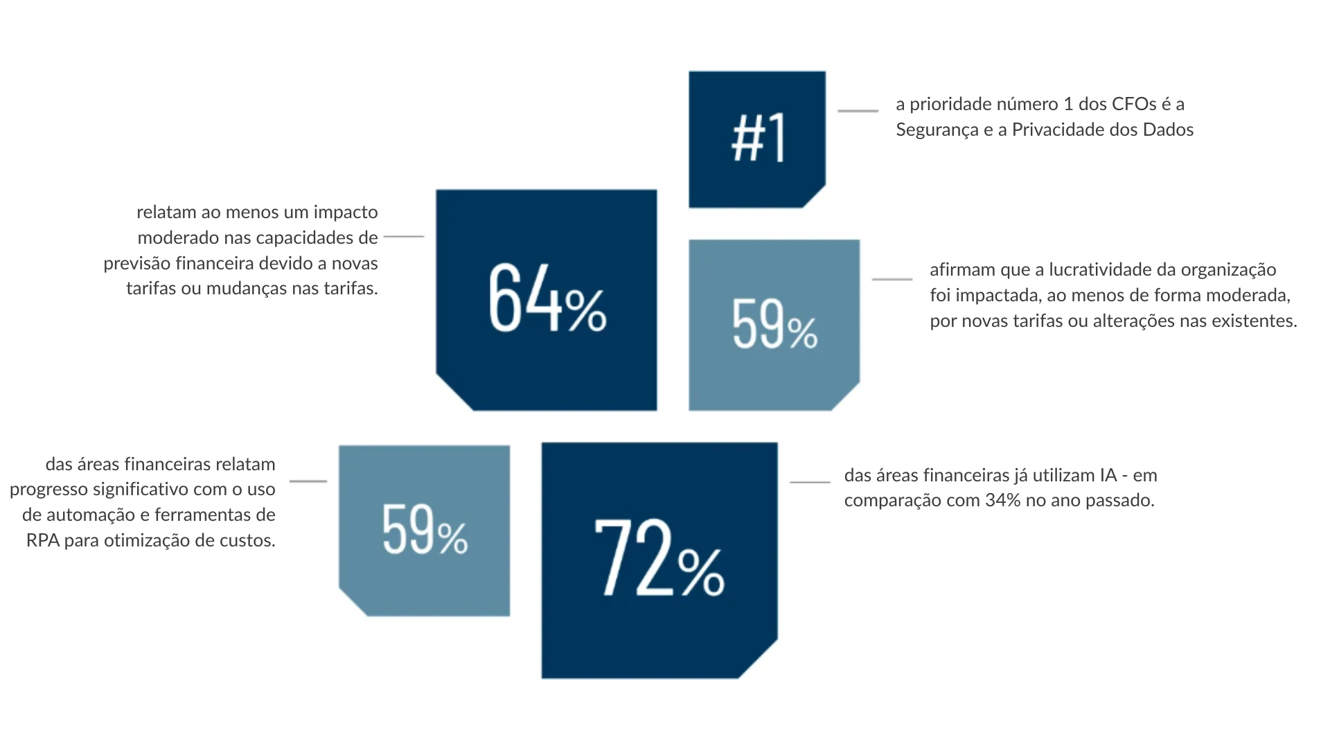 As equipes financeiras estão enfrentando a contínua incerteza econômica e as mudanças nas tarifas com recursos aprimorados de Análise Financeira e planejamento estratégico. Os CFOs permanecem confiantes em sua capacidade de se adaptar rapidamente a novos desafios que impactam a lucratividade e os relatórios. A adoção de automação, inteligência artificial e tecnologia tem proporcionado melhor gestão de custos e previsões, enquanto segurança e privacidade de dados continuam entre as principais prioridades. Essas inovações capacitam os líderes financeiros a tomarem decisões ágeis e colaborarem de forma mais eficaz, promovendo transparência e resiliência.